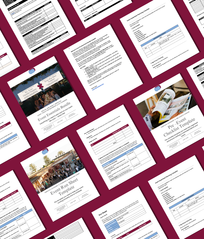 Professional checklists, run sheets and guides created by event professionals to help you plan with clarity, structure and confidence.